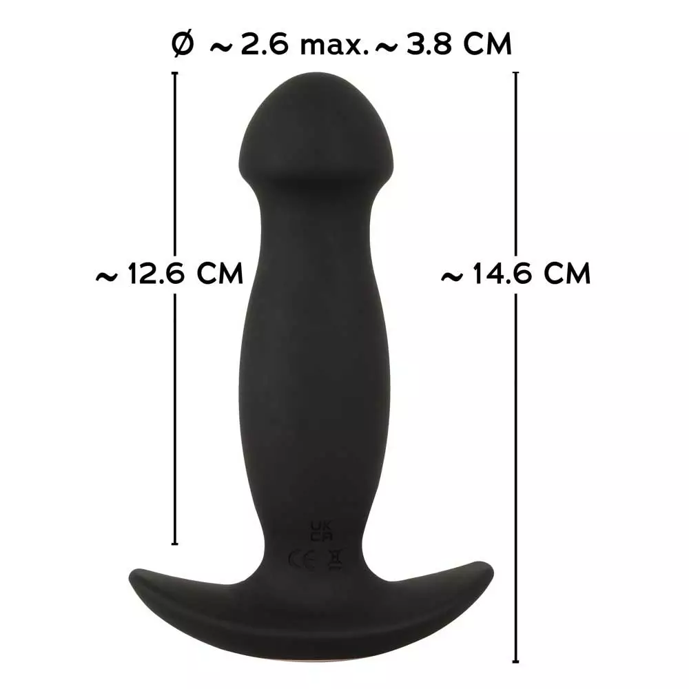 De 10 vibratiestanden en 6 schuddende, pulserende stuwstanden kunnen afzonderlijk worden bediend met de knoppen op het speelgoed of via de afstandsbediening. Ook een partner kan de regie overnemen, want de afstandsbediening heeft een bereik van 5 meter. De plug is bedekt met een Soft Touch-textuur en glijdt gemakkelijk in anale diepten. De brede basis garandeert een veilige hantering en voorkomt dat het speeltje te ver naar binnen schuift. Dat betekent dat het ook mogelijk is om de plug lang te dragen (bijvoorbeeld tijdens seks).