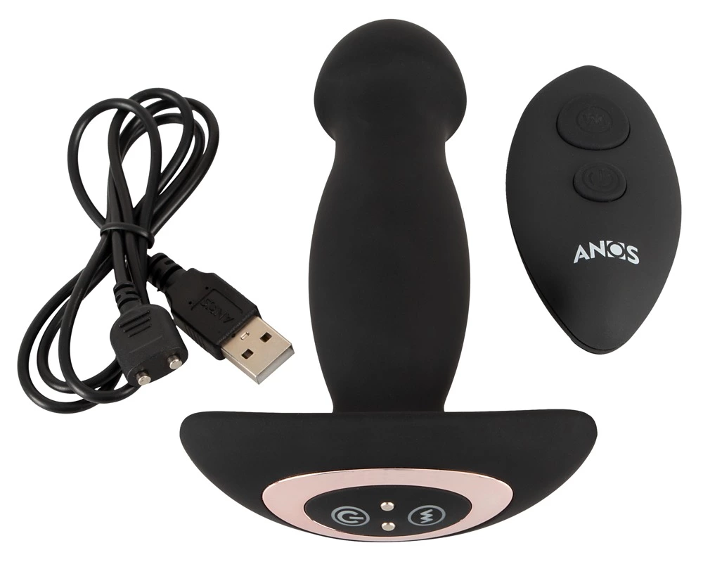 Vibro-buttplug RC JackHammer Massager van ANOS met een innovatieve Floating Magnet Technology die de plug op een intense manier laat schudden, pulseren en stuwen. De intense klopimpulsen in de uitpuilende schacht zorgen voor een uiterst aangename stimulatie van het anale gebied en stimuleren ook direct de prostaat. Trillingen en pulsaties kunnen ook zeer intens worden gevoeld in het perineum bij het dragen van de plug.