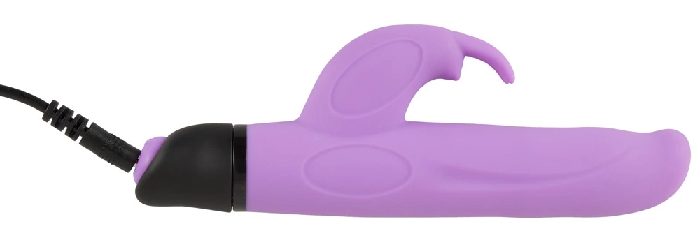 Rabbit vibrator with 2 motors and 7 vibration modes. The shaft with stimulating grooves provides a mesmerizing stimulation. The travel lock and the vibrator’s small size make the Mini Rabbit a great travel companion. Includes a USB cable.